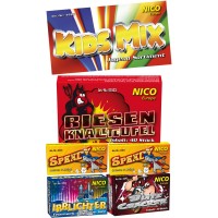 66-teiliges Jugend-Sortiment mit Knallteufeln und Feuerringe im Klarsichtbeutel.